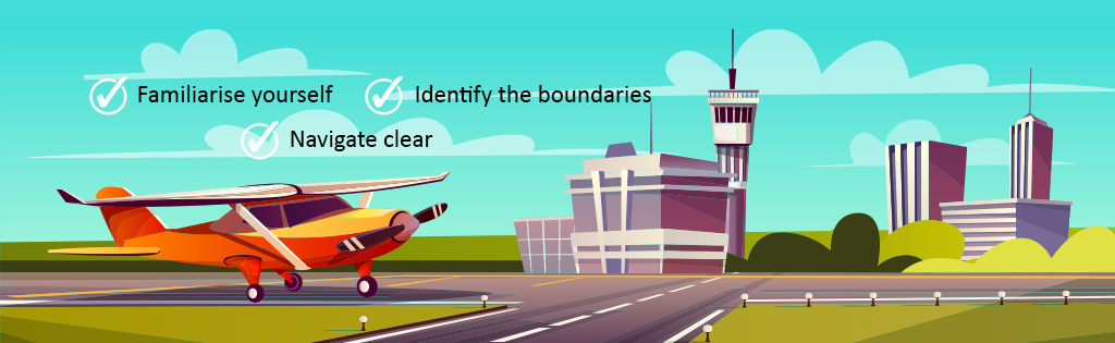 👉 Remind yourself where in a physical geographical sense the control boundaries are in your pre-flight planning: controlled airspace generally is off-limits.