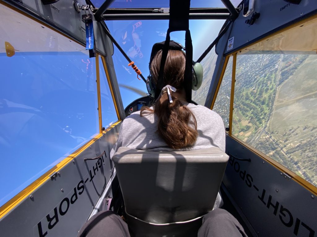 Stewart Hignett, a pilot and former flight instructor, always hoped his daughter Tabitha would one day want to learn to fly. Never wanting to push her, he knew the decision had to come from her. When she turned 16 and expressed an interest, Stew booked a Trial Instructional Flight at Wings Out West with CFI Dan Compton. Dan had previously taught her older brother Ben, and Stew was confident his daughter would be in safe hands. From that first TIF it was clear she was hooked: the Cub responded beautifully under her control, and she beamed throughout the flight. Not before she and Dan played a mean little joke on Stew, pretending the experience had been awful and that she had no intention of continuing. The ruse did not fool him for long, and more lessons were promptly arranged.