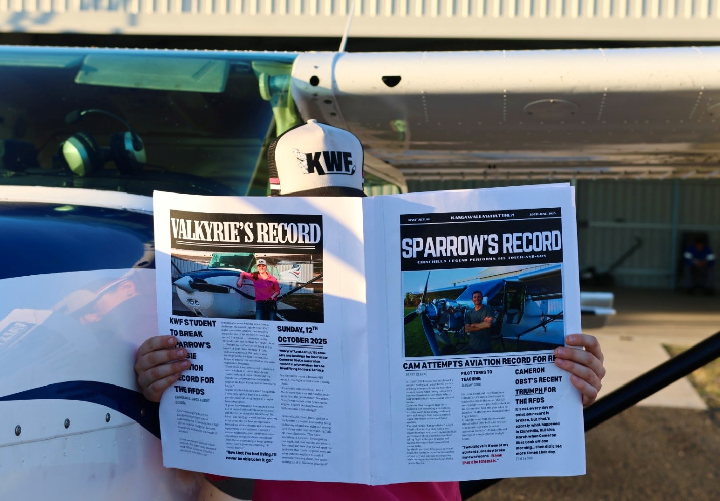 The current record—145 takeoffs and landings—is held by Cameron “Sparrow” Obst, Chief Flying Instructor at Kangawallafox Flight School and another local legend from Chinchilla. Sophie will attempt to surpass that number in a Brumby 610 aircraft, under the watchful eyes and encouraging support of the Kangawallafox team and a community of aviation enthusiasts.